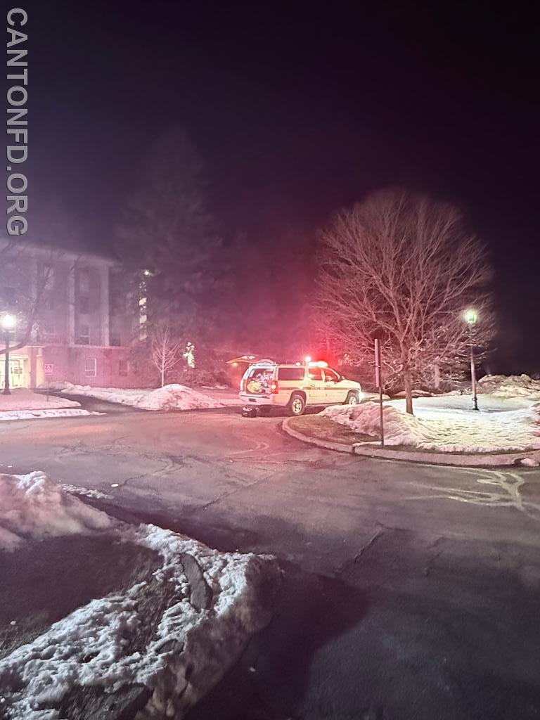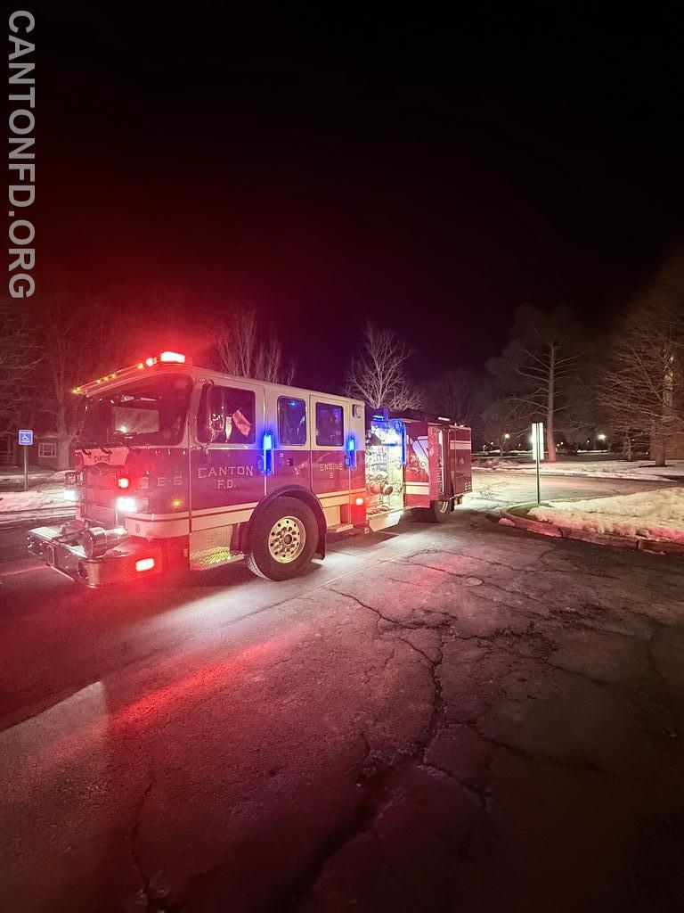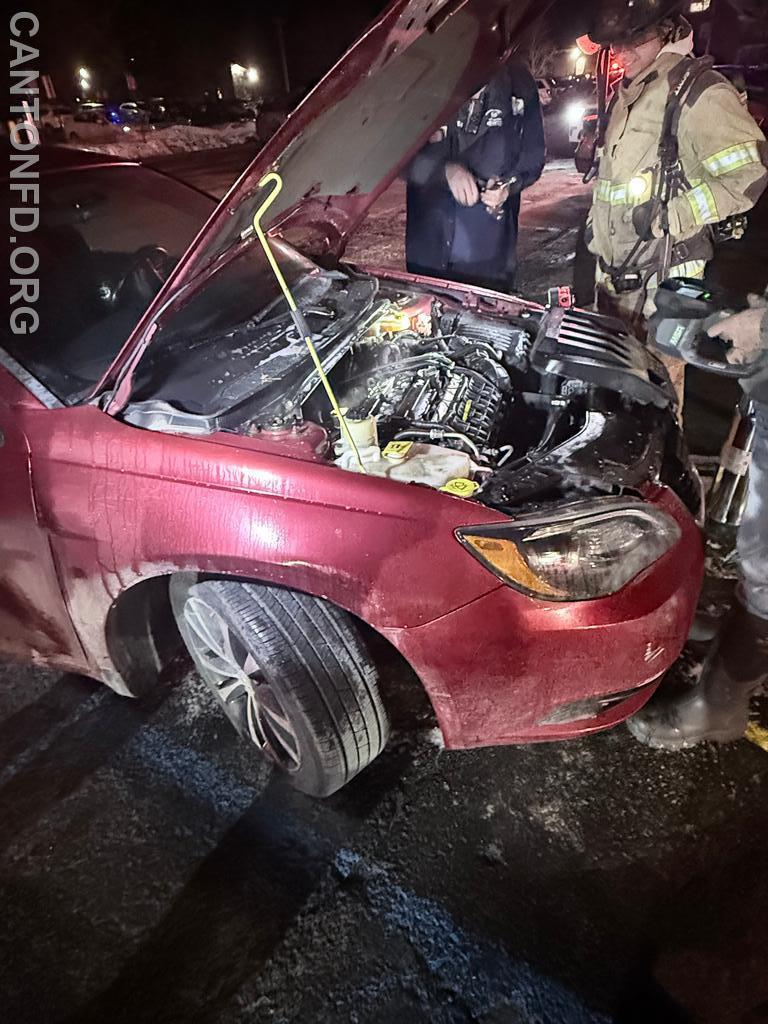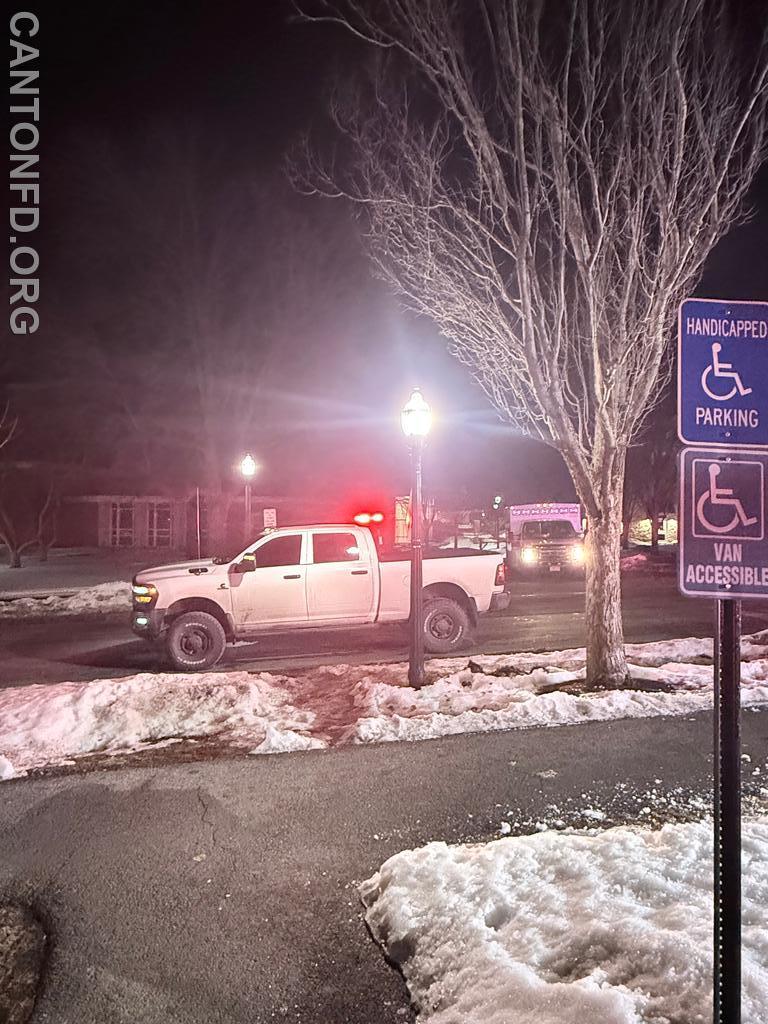 At 1910 hours, Canton Fire and Rescue were toned for a possible car fire in H-Lot at St. Lawrence. Canton 4-3 (Chief E. Johnson) went en-route at the time of alarm. 4-3 later arrived on scene reporting light smoke coming from the vehicle. Engine 6 was en-route at 1917 hours.