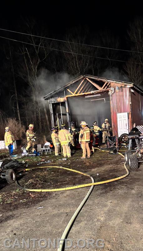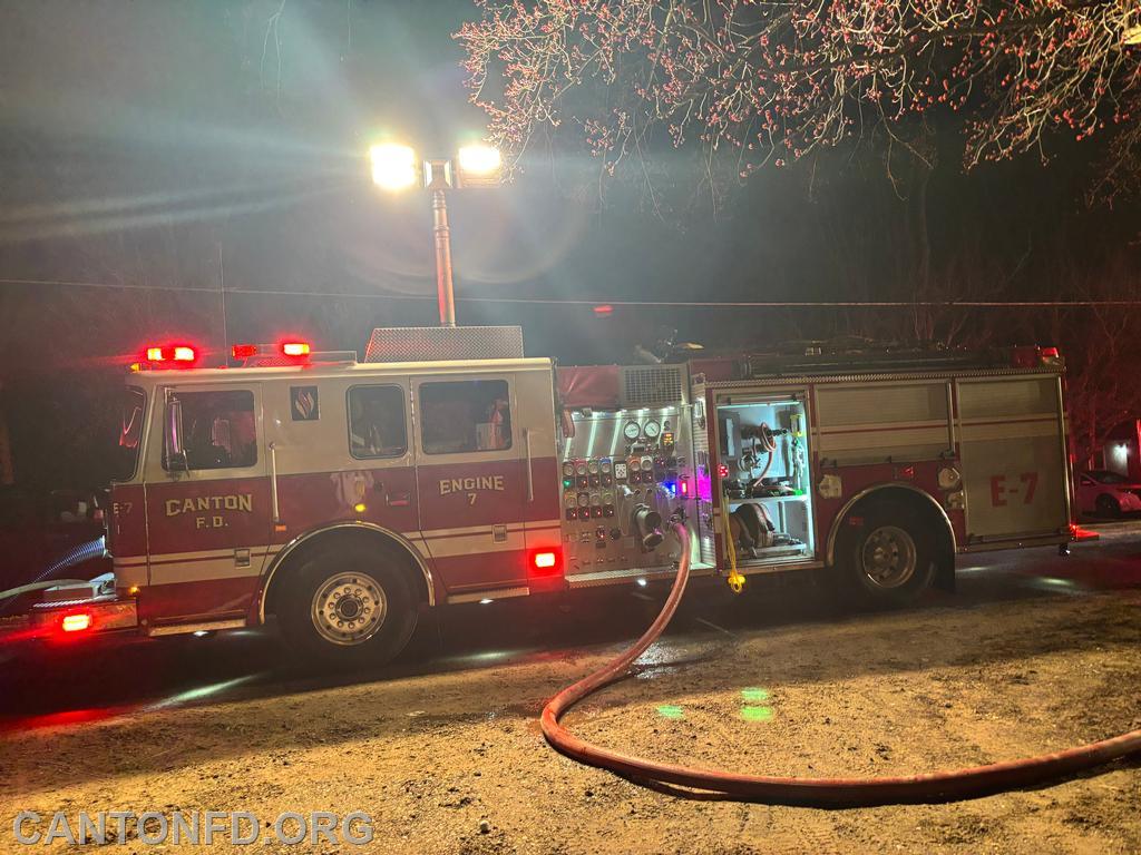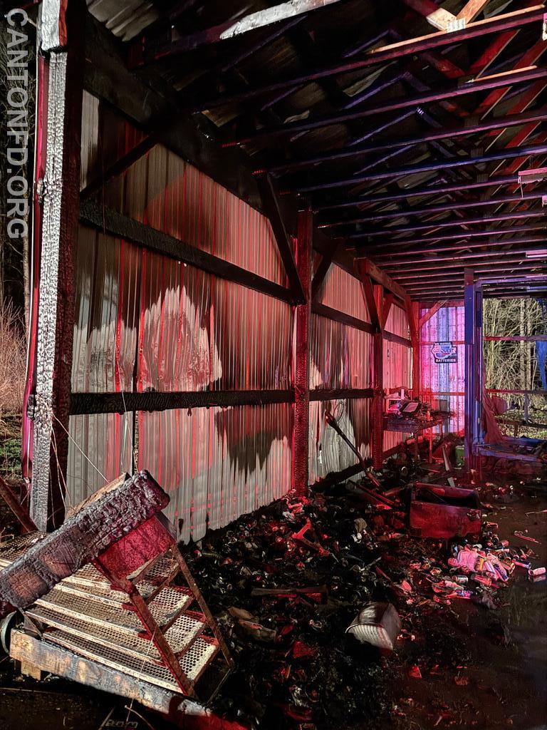 Engine 7 crew arrived on scene, stretched an 1 3/4" line, and was able to quickly knock down the fire. With the quick knock down, the Tanker Task Force request was canceled. Crews performed overhaul operations to make sure the fire was completely extinguished. There were no firefighter or civilian injuries. All Canton units were back in service at 2338.